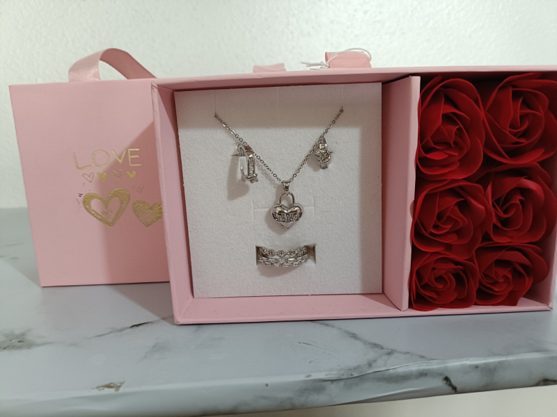 Precioso conjunto «Love» de tres piezas para mujer, elaborado en acero. ¡El regalo perfecto para sorprender
